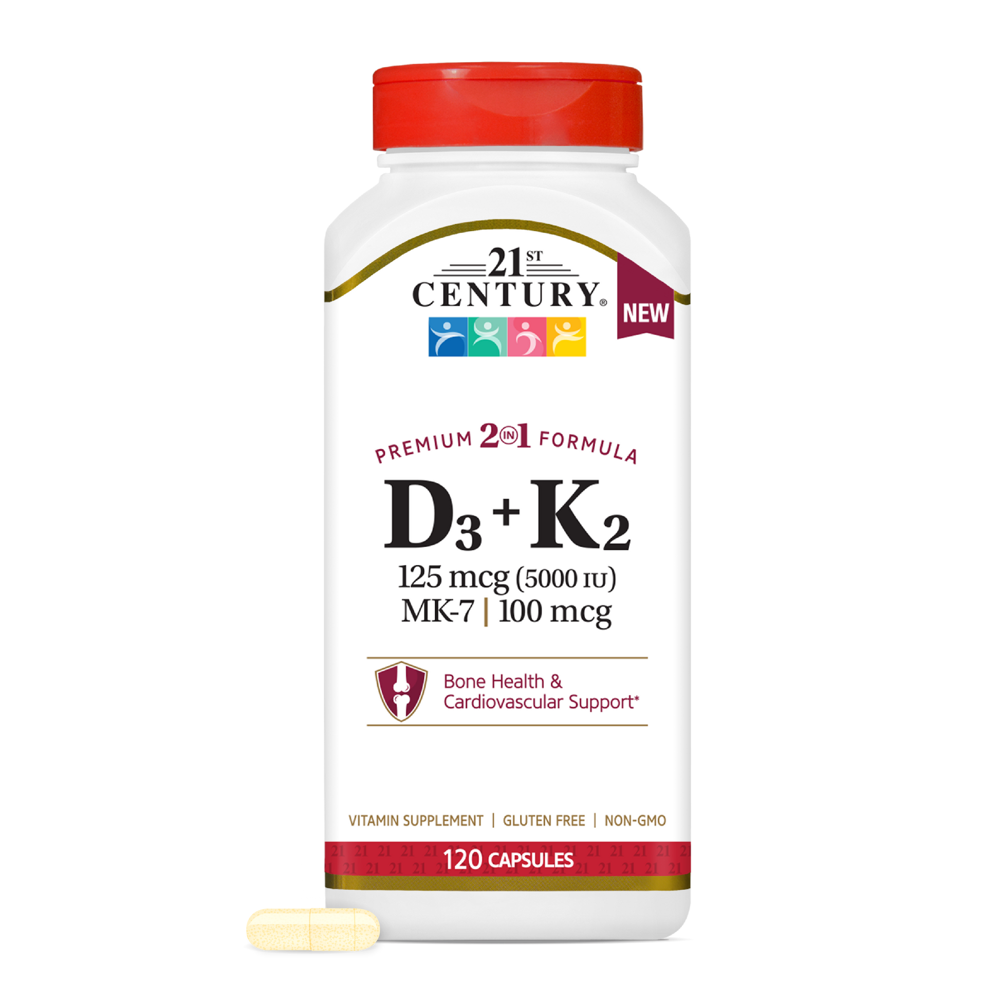 21ST Century D3 + K2 combines vitamin D3 with the most active form of vitamin K, two nutrients that support bone, teeth and cardiovascular health. Vitamin D is essential for absorption of calcium. Vitamin K is also important for the formation of healthy bones.*