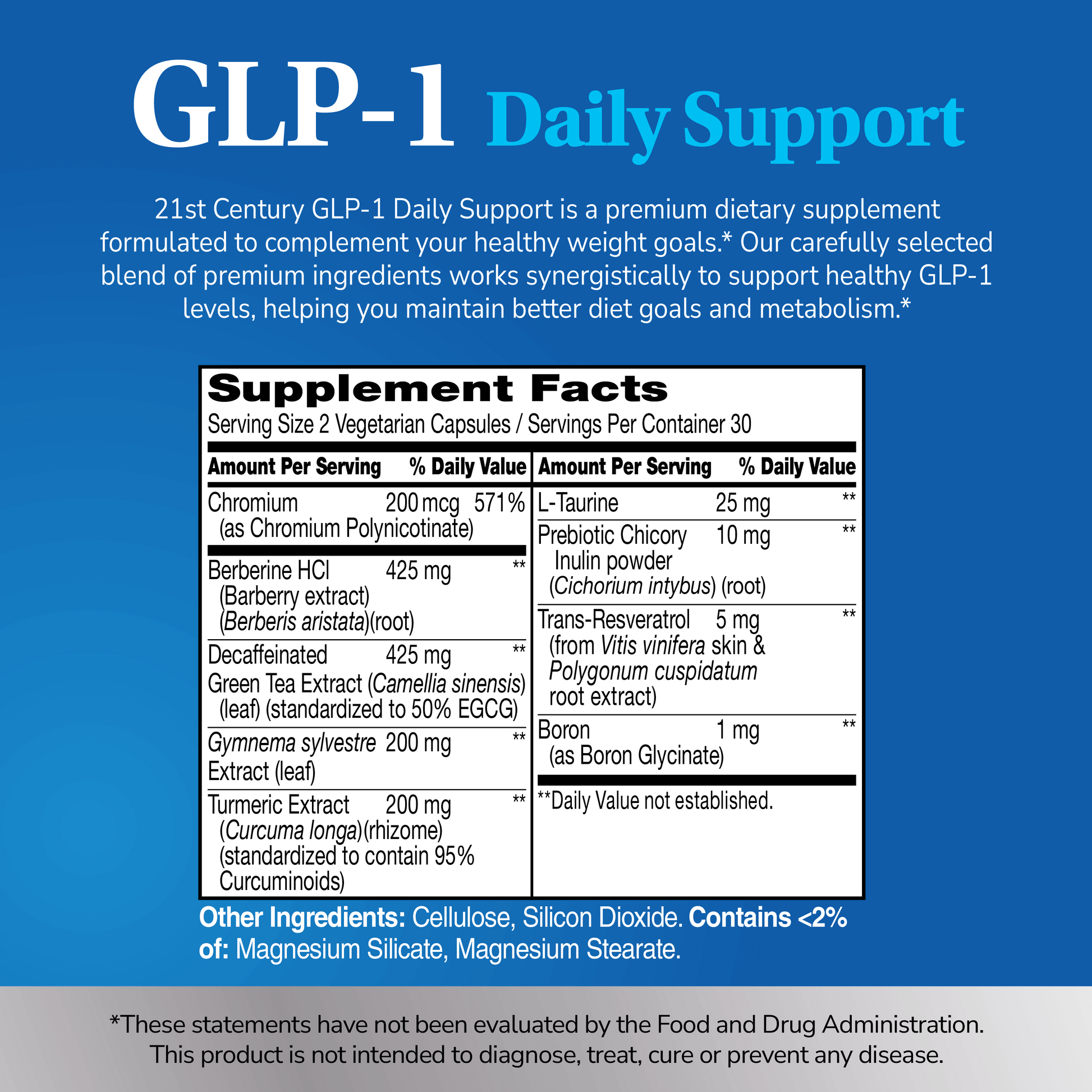 21ST Century® GLP-1 Daily Support is a premium dietary supplement formulated to complement your healthy weight goals. Our carefully selected blend of premium ingredients works synergistically to support healthy GLP-1 levels, helping you maintain better diet goals and metabolism.