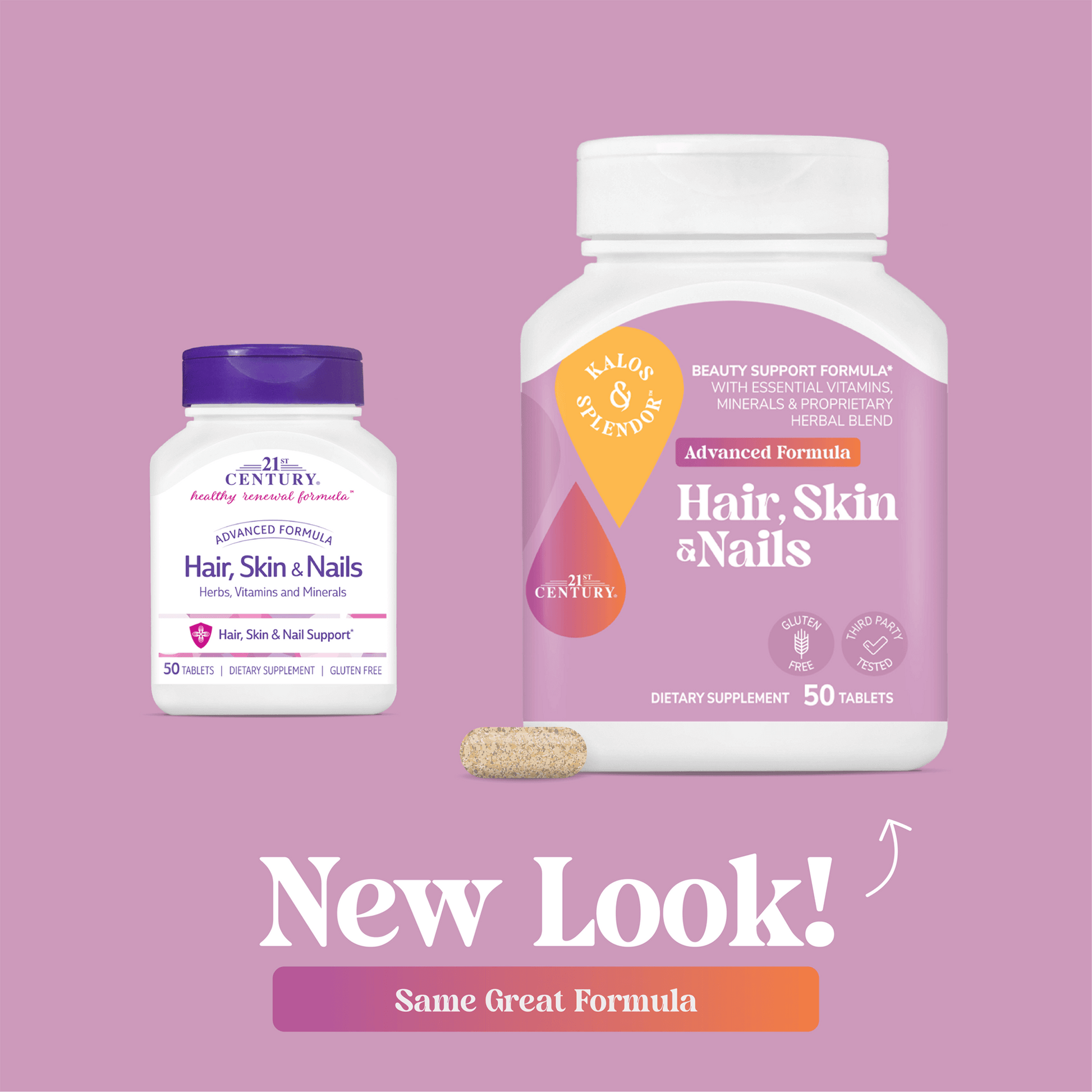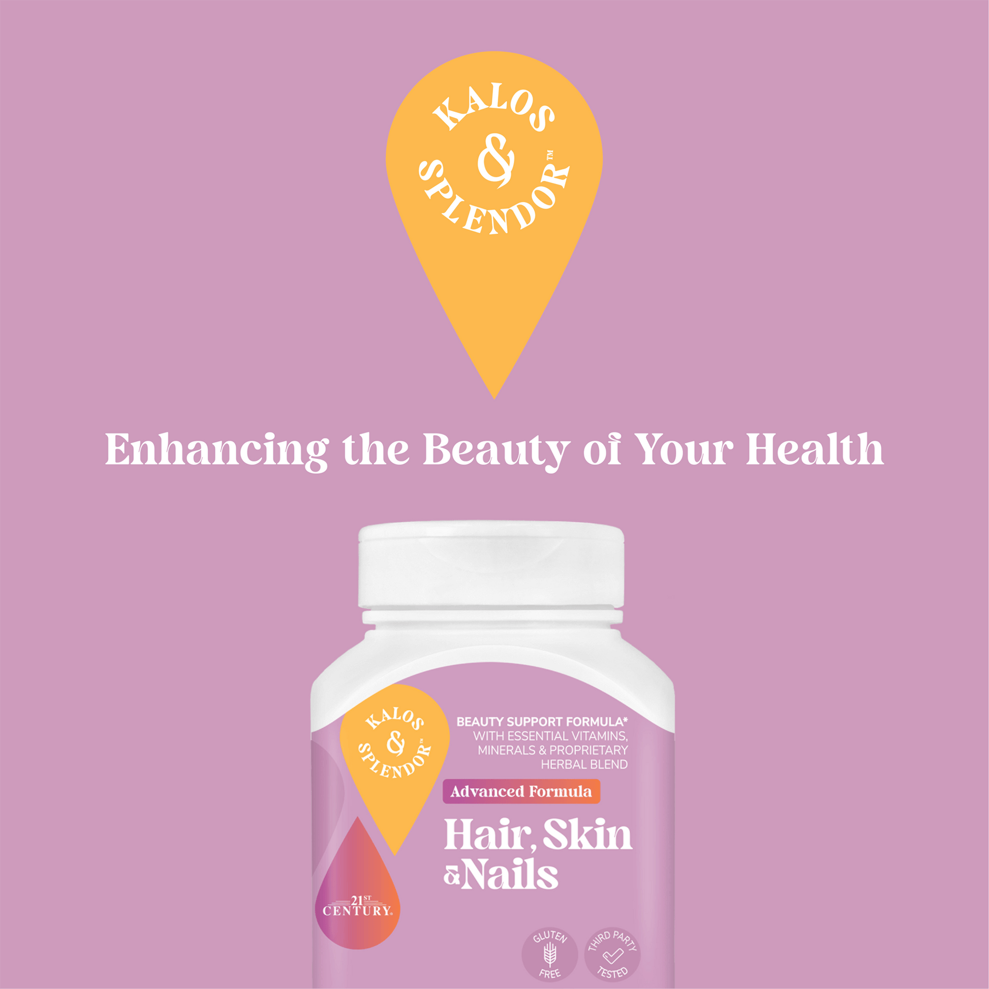 21st Century Kalos & Splendor Advanced Hair, Skin & Nails is a premium blend of natural herbs, vitamins and minerals. It is formulated to support the health of your hair, skin and nails with just one tablet a day.*