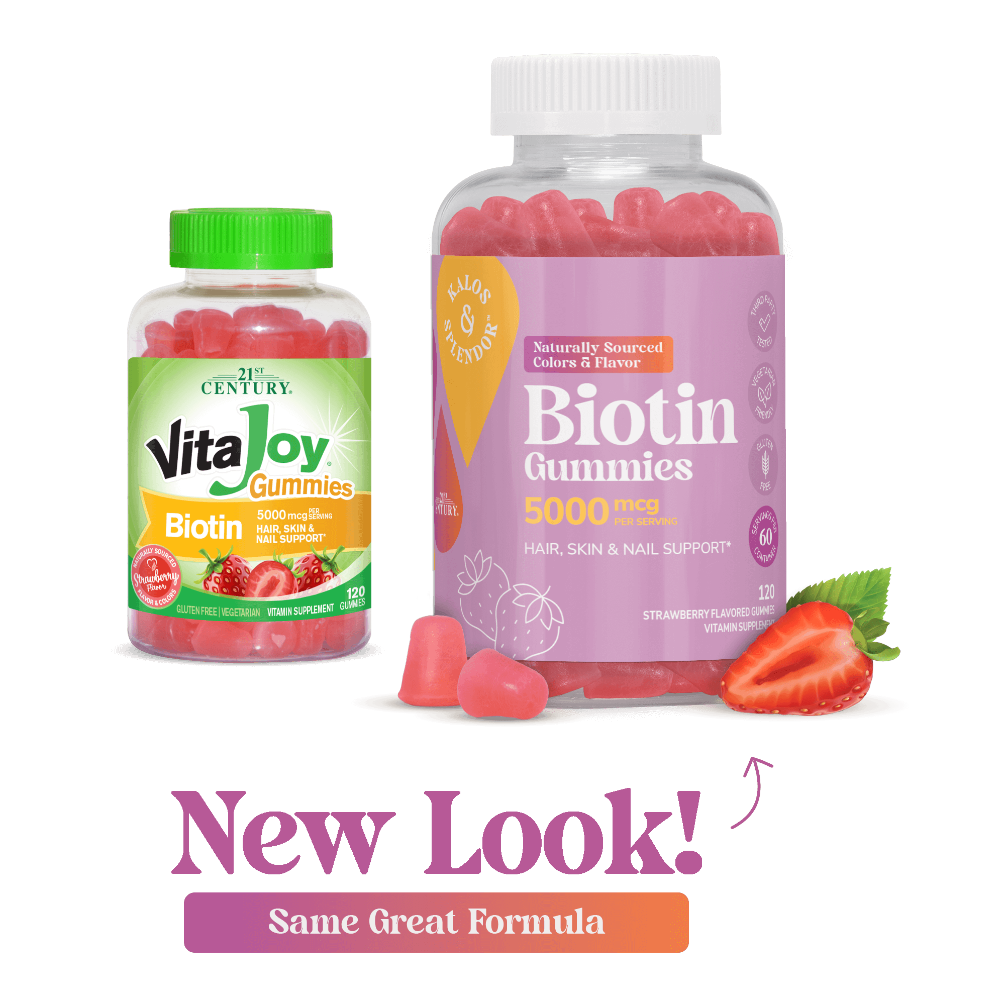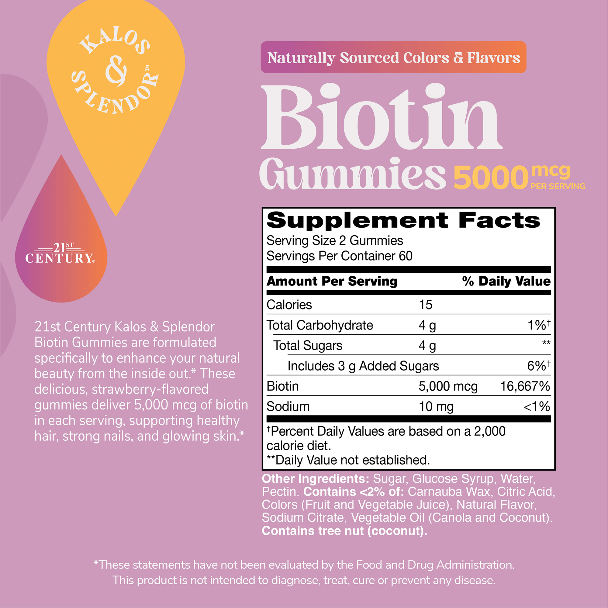 21ST Century Kalos & Splendor Biotin Gummies are formulated specifically to enhance your natural beauty from the inside out. These delicious, strawberry-flavored gummies deliver 5,000 mcg of biotin in each serving, supporting healthy hair, strong nails, and glowing skin.