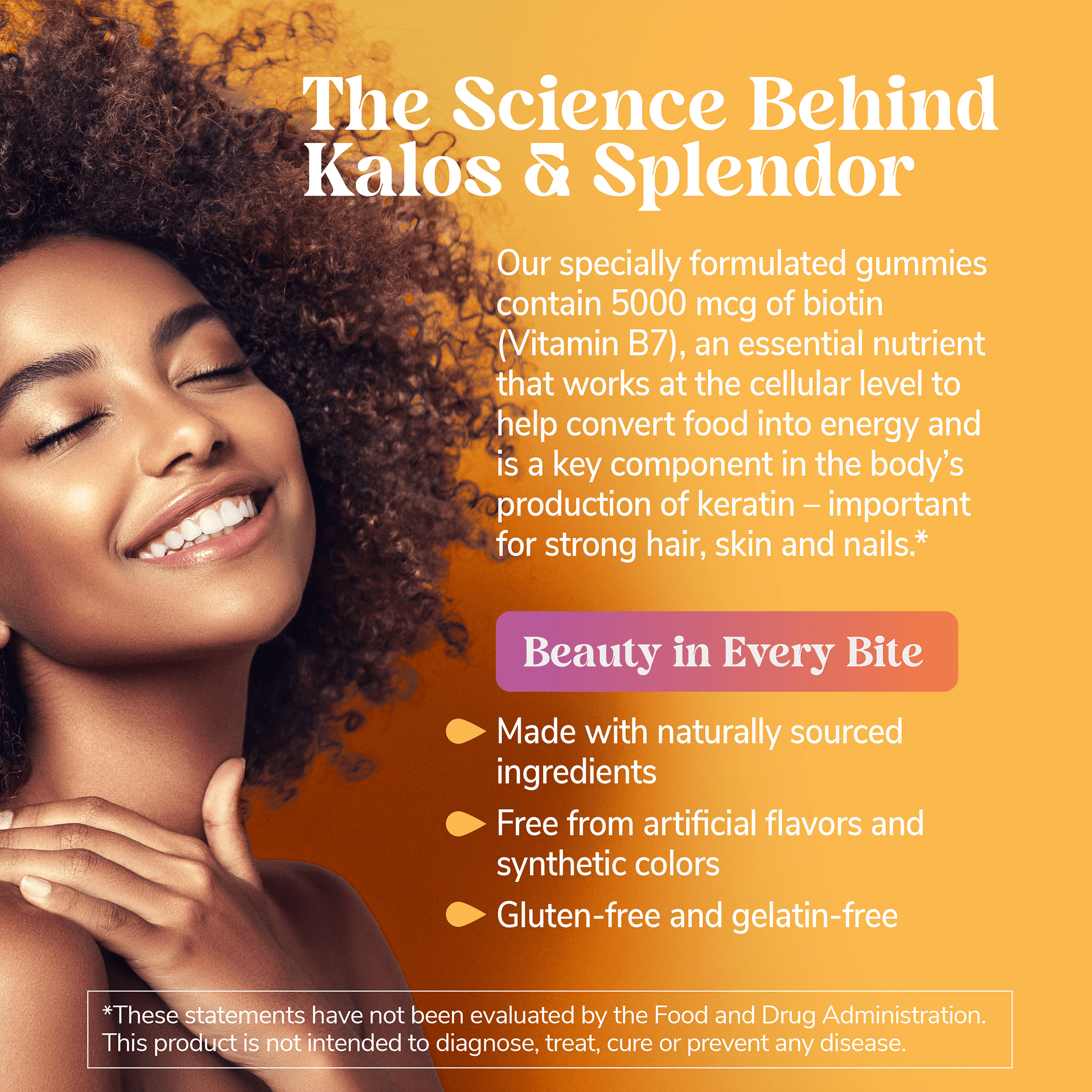21ST Century® Kalos & Splendor Biotin Gummies offer 5,000 mcg of biotin per serving to support hair, skin and nail health.*