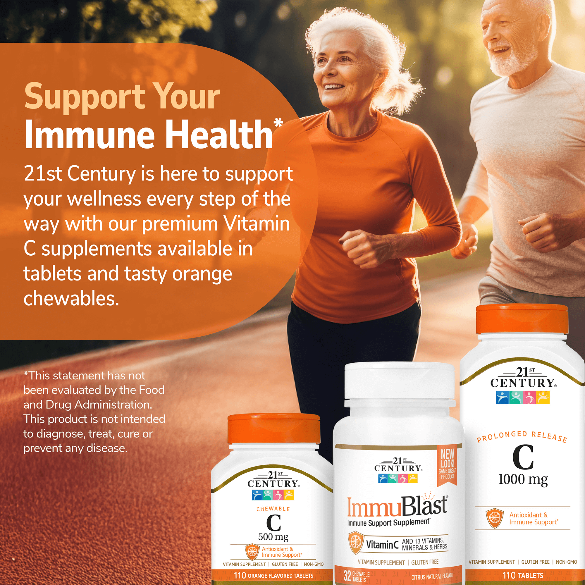 21ST Century ImmuBlast Chewables provides 1000 mg Vitamin C plus 13 vitamins, minerals and herbs per serving to support your body's natural immune support system.*