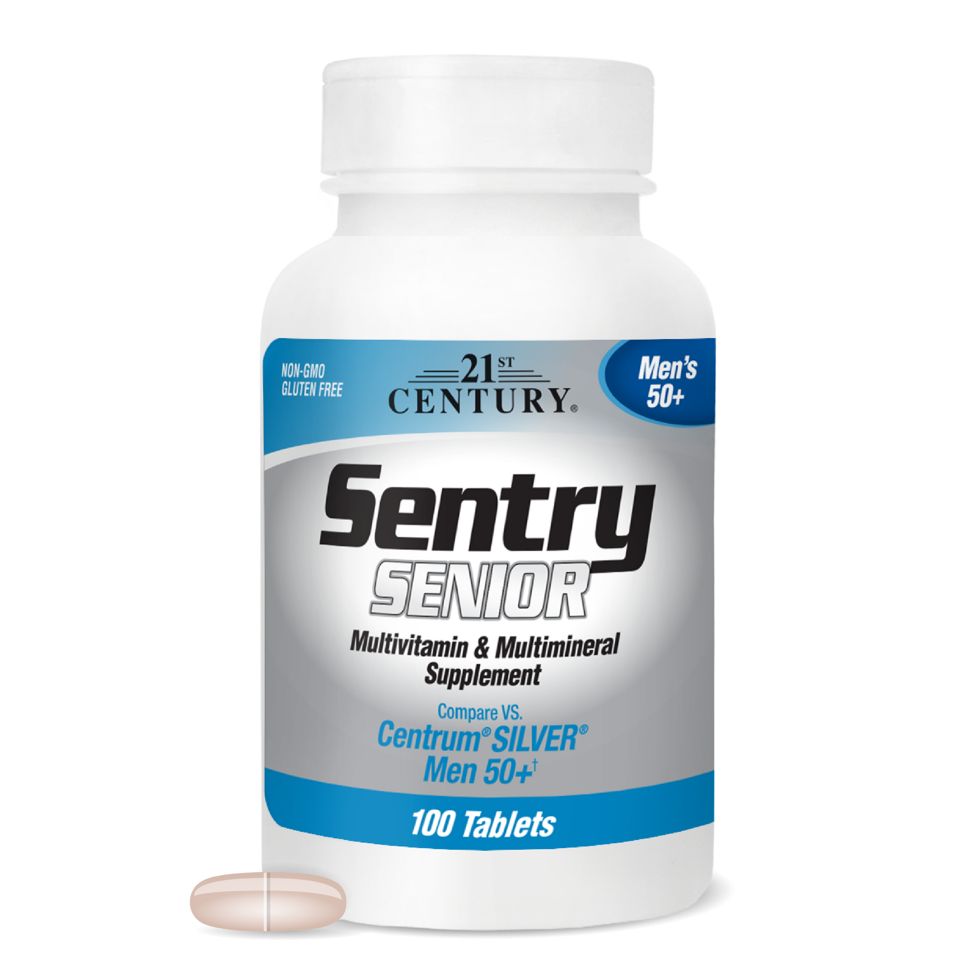 A balanced diet is the best source of nutrients to support a healthy lifestyle. Adding 21ST Century Sentry Men’s 50+ multivitamin and multimineral supplement to a daily routine can support nutrient gaps that may occur as men age and makes it an excellent choice for those looking to maintain overall wellness and vitality in their golden years.*