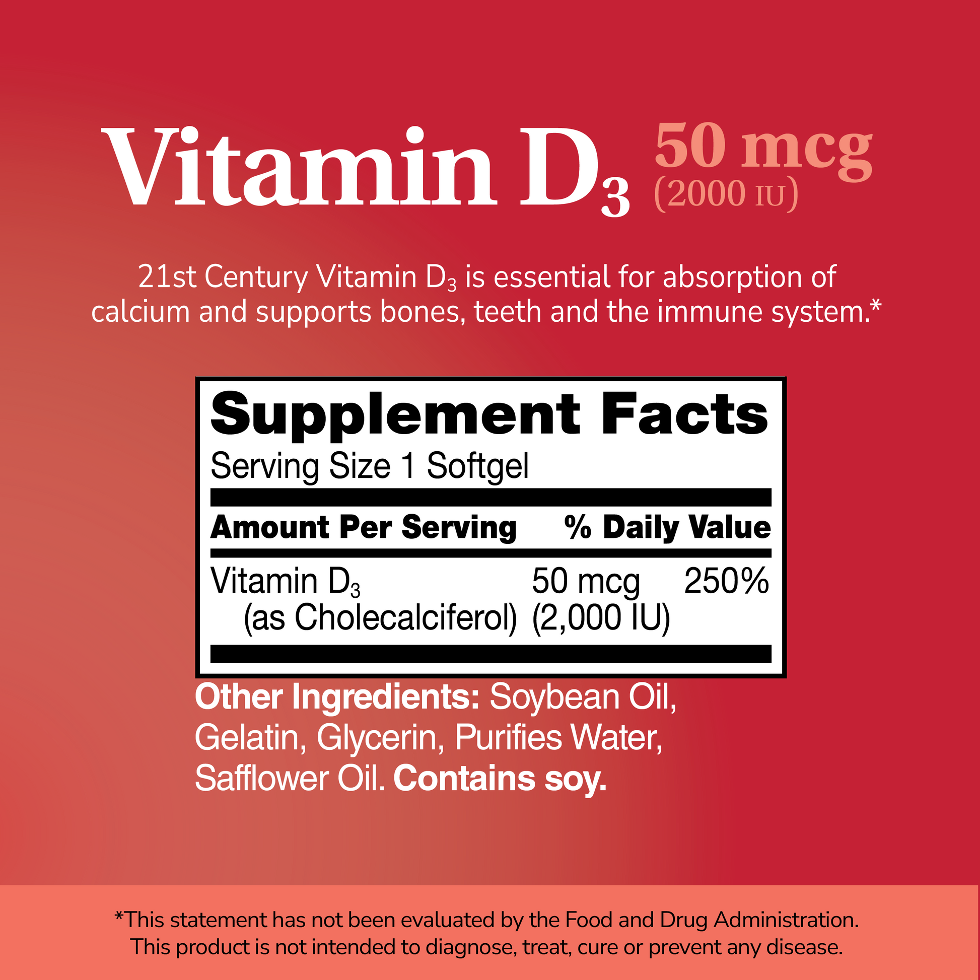 Warning: Consult a healthcare provider prior to use if pregnant, nursing, taking any medications, have a medical condition (especially hypercalcemia, kidney disease or hyperparathyroidism), or are planning a medical procedure. Do not take with other supplements that contain vitamin D, such as multivitamins. Stop use and contact a physician if adverse reactions occur.