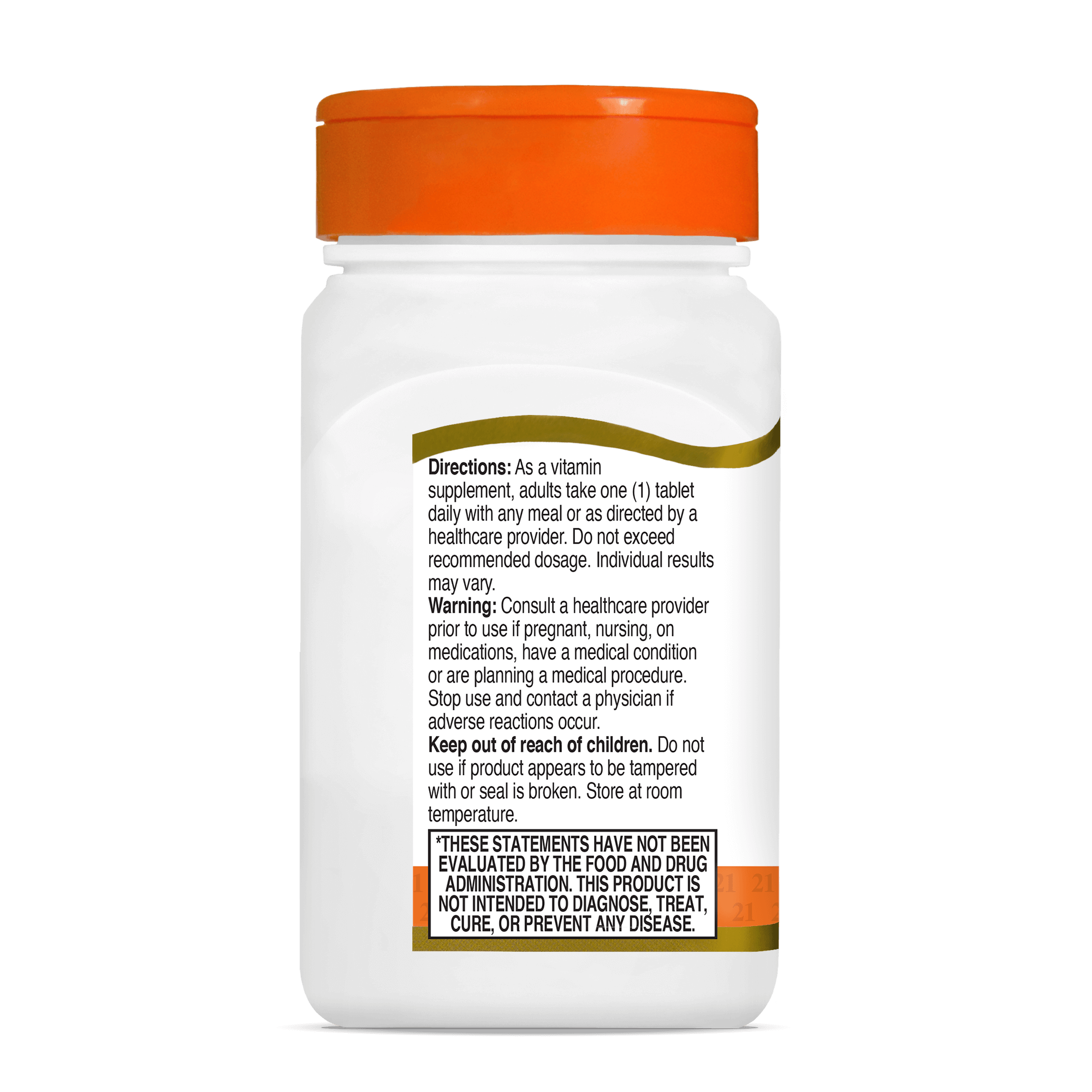 Directions: As a vitamin supplement, adults take one (1) tablet daily with any meal or as directed by a healthcare provider. Do not exceed recommended dosage. Individual results may vary.