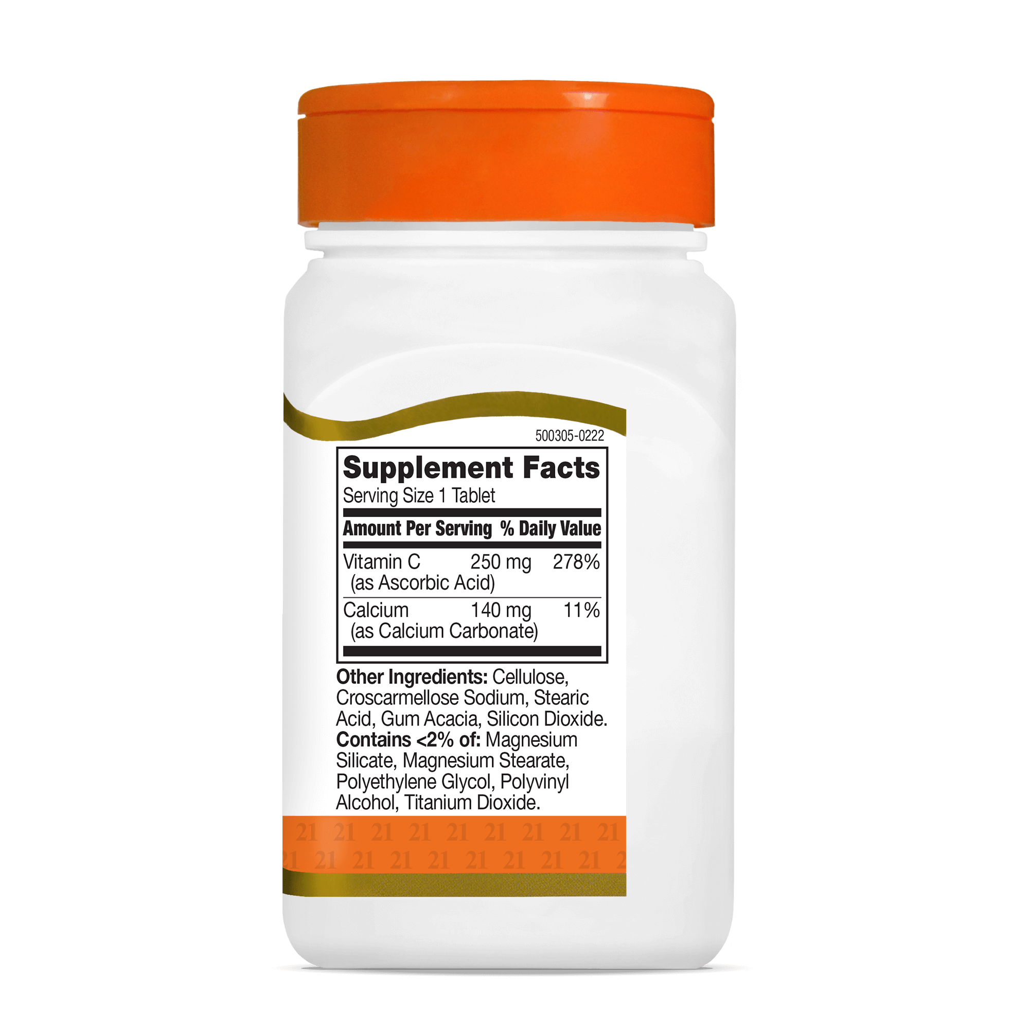 Other Ingredients: Cellulose, Croscarmellose Sodium, Stearic Acid, Gum Acacia, Silicon Dioxide. Contains <2% of: Magnesium Silicate, Magnesium Stearate, Polyethylene Glycol, Polyvinyl Alcohol, Titanium Dioxide.